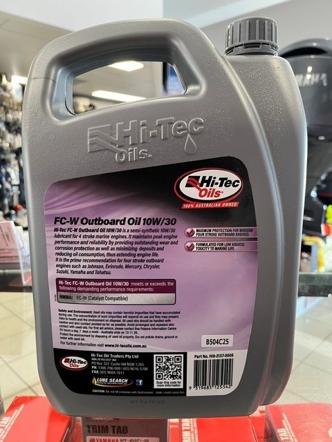 Hi-Tec FC-W Outboard Oils are semi-synthetic lubricating oils developed to meet the increasing severity of performance required of four stroke outboard engines. Hi-Tec FC-W Outboard Oils meet the performance requirements of the NMMA (National Marine Manufacturers Association) FC-W oil standard.